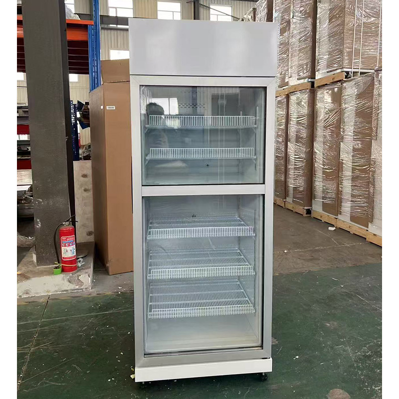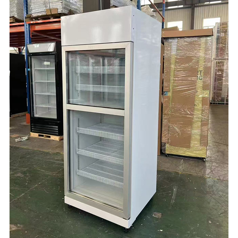 Vertical dual temperature fridge showcase