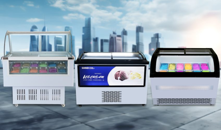 Curved ice cream cabinet